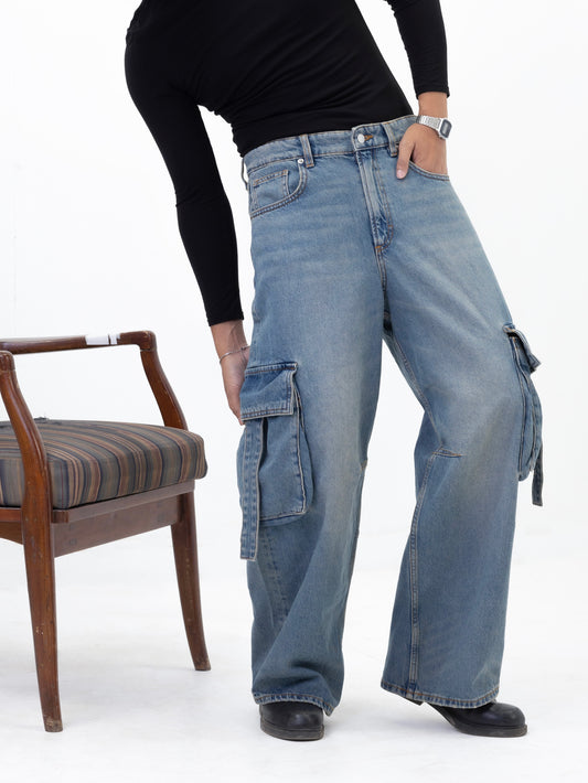 Aajkaal Skyline Wide-Leg Cargo Denim