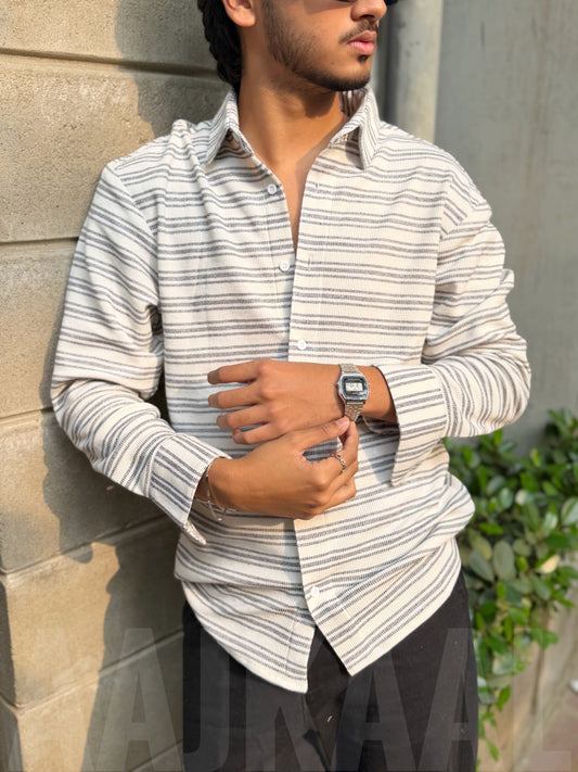 White Urban Stripe Textured Full Sleeve Shirt