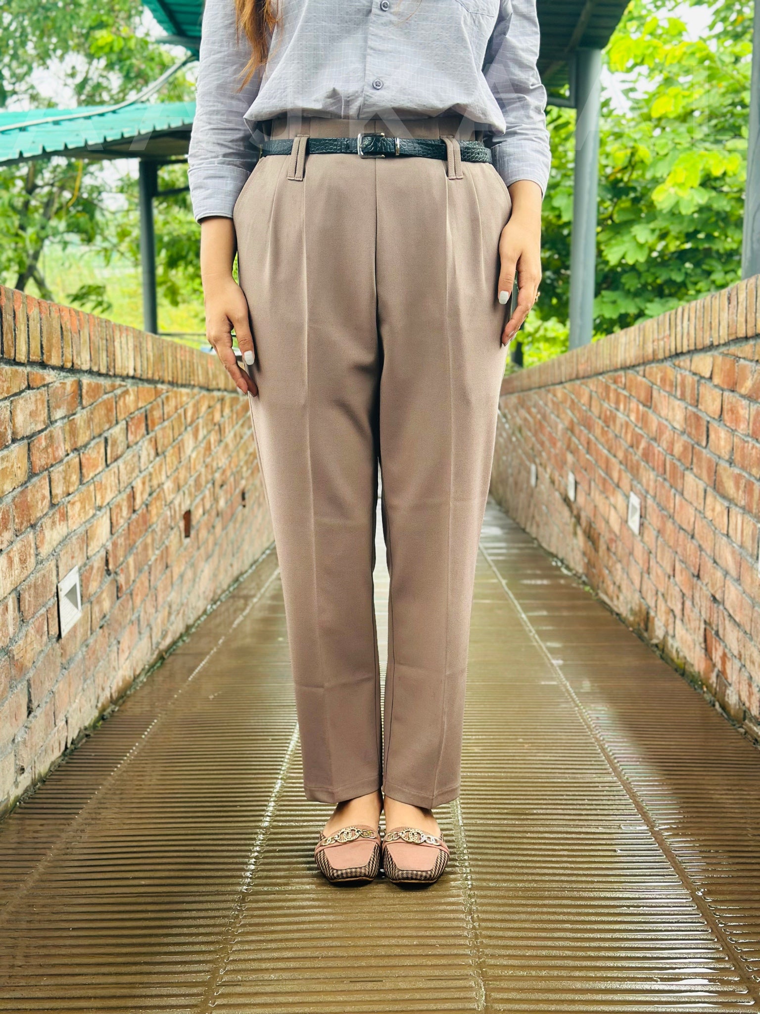 Beige High Waisted Formal Pant